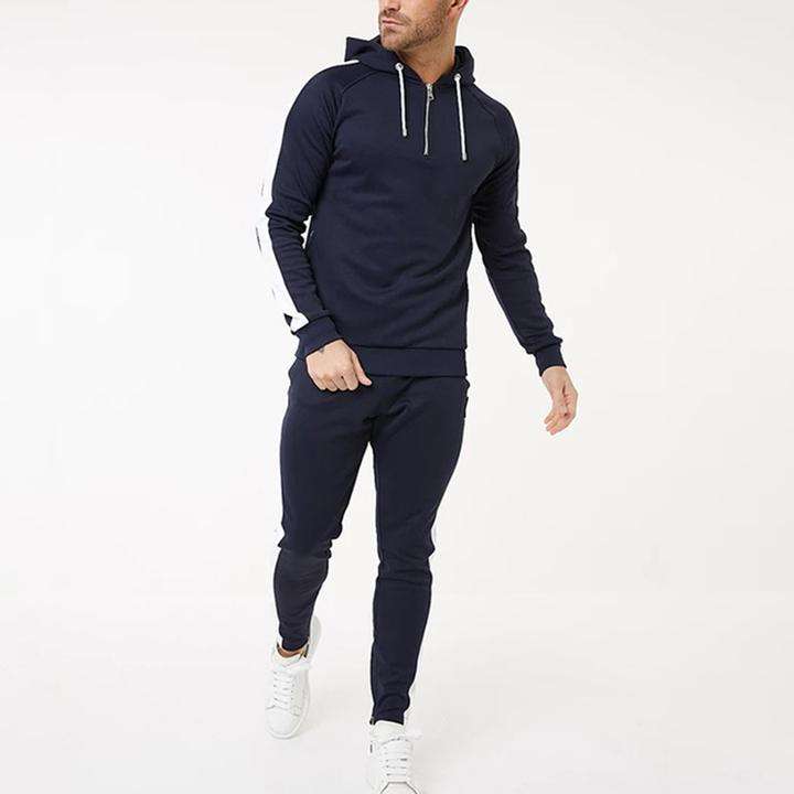 ชุดวอร์มใส่วิ่งของผู้ชายชุดวอร์มเข้ารูปเสื้อแจ็กเก็ต2ชิ้นมีฮู้ดและกางเกงวอร์มเข้ารูปสำหรับวิ่งจ๊อกกิ้งปักลาย