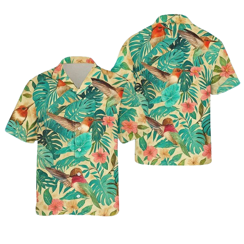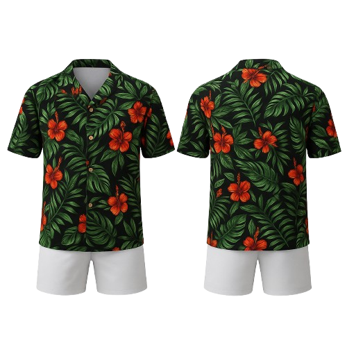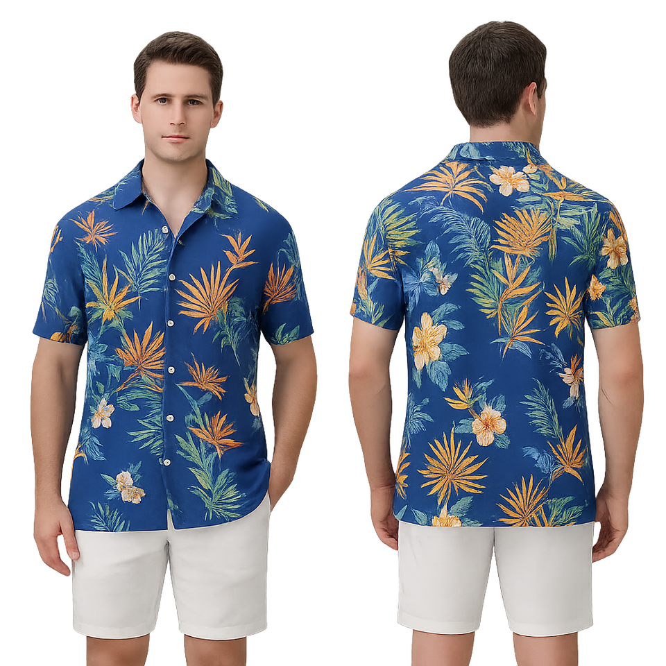 เสื้อเชิ้ตผู้ชายลายพิมพ์ดอกไม้สไตล์ซาฟารี ผ้าซาตินทอ 100% โพลีเอสเตอร์ ระบายอากาศ แห้งเร็ว เหมาะสำหรับใส่เที่ยวพักผ่อนฤดูร้อน แขนสั้น