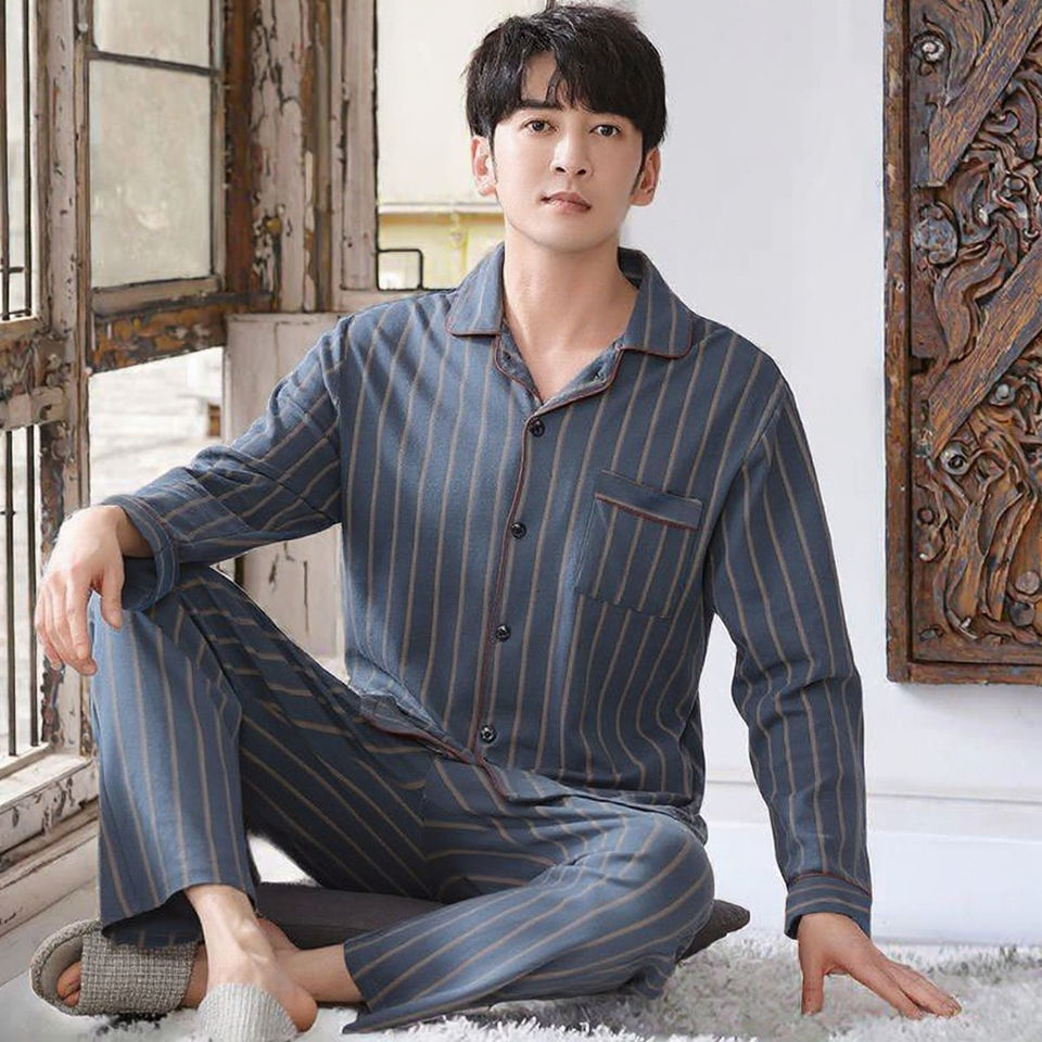 ชุดนอนแขนยาวคอวีผ้าซาตินสำหรับผู้ชายชุดเสื้อคาร์ดิแกนแฟชั่นระบายอากาศได้ดีสวมใส่สบาย