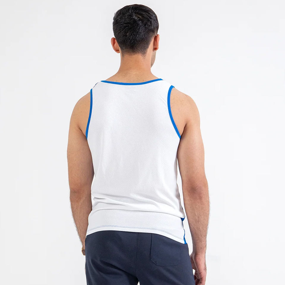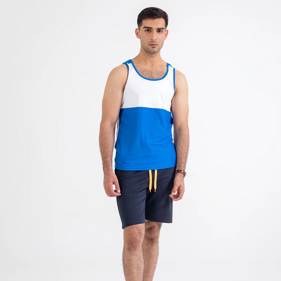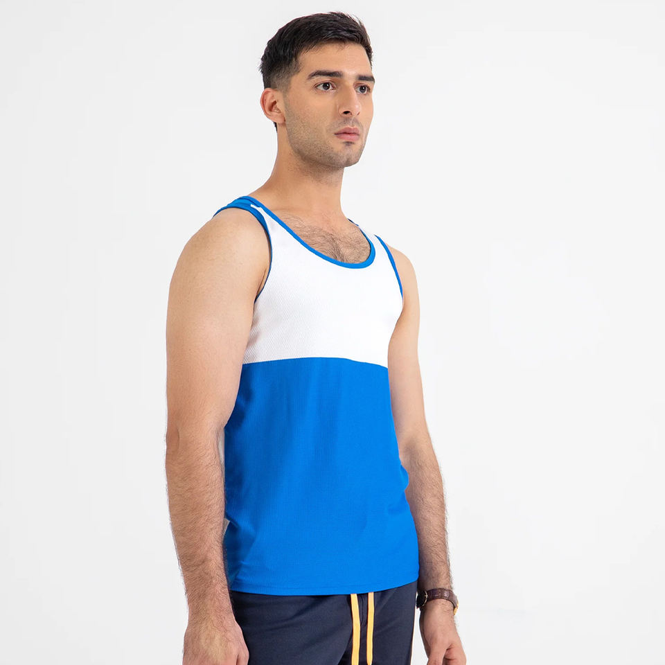เสื้อกล้ามผ้าคอตตอนโพลีเอสเตอร์ไร้รอยต่อสำหรับผู้ชายแห้งเร็วระบายอากาศได้ดีเสื้อกล้ามลำลองสองสีวิ่ง