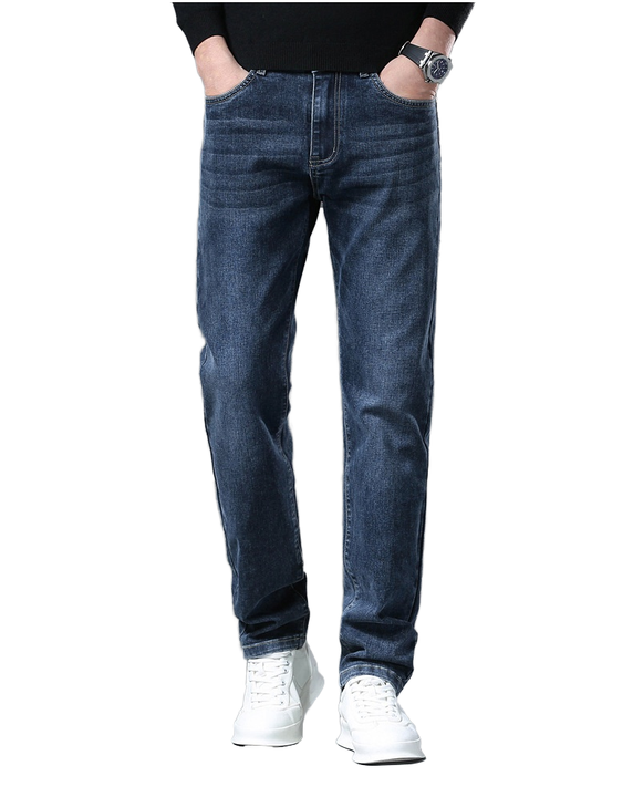 กางเกงยีนส์ทรงตรงผ้ายีนส์ซลเวดจ์สำหรับผู้ชาย ลวดลายเรียบ สวมใส่สบาย ทรงหลวม เอวยางยืด สีน้ำตาลกลาง