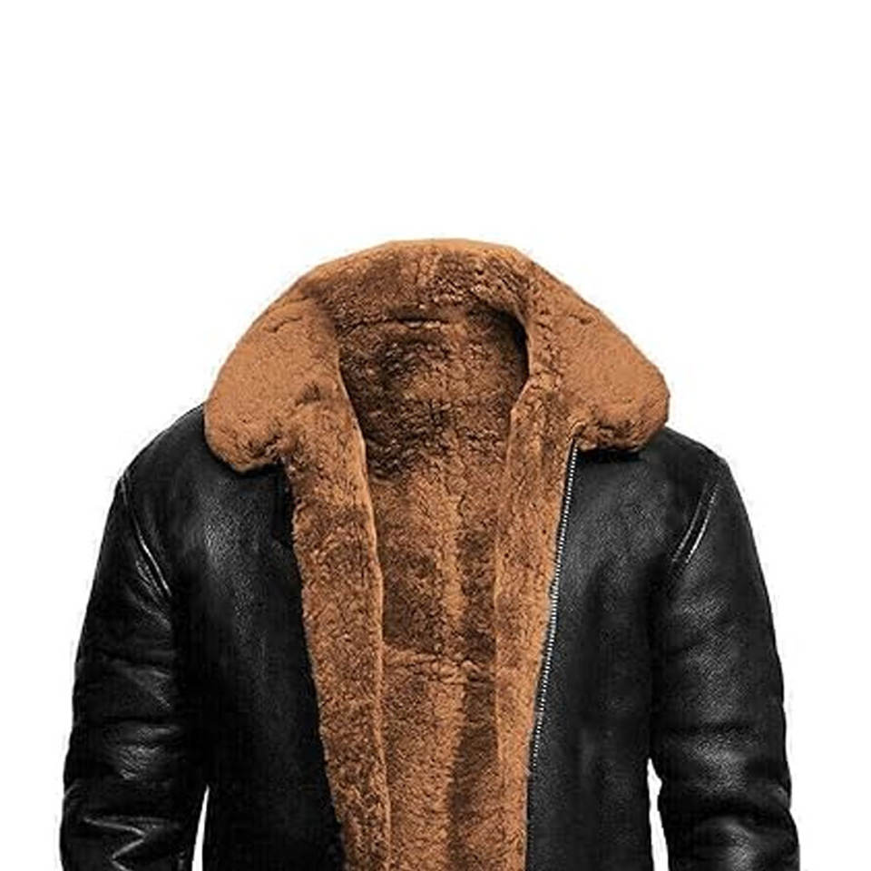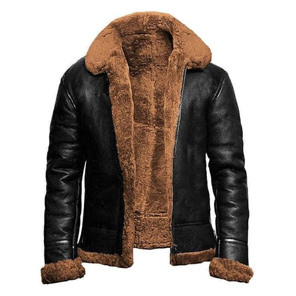 เสื้อแจ็คเก็ตบอมเบอร์หนังแกะสำหรับผู้ชาย คอปกแบบลา펠 สไตล์นักบินคลาสสิก อุ่นหนา เหมาะสำหรับขี่มอเตอร์ไซค์ บุขนแกะสำหรับฤดูหนาว
