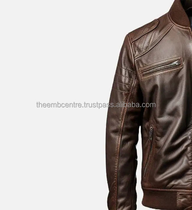 แจ็กเก็ตบอมเบอร์หนังแกะของผู้ชายแจ็คเก็ตหนังแฟชั่นแบบใหม่2025ออกแบบได้ตามต้องการ
