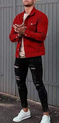 แจ็กเก็ตยีนส์ Sherpa ผู้ชาย, เสื้อผ้าแฟชั่นผ้ายืดเข้ารูปพร้อมกระดุมตกแต่ง100% สำหรับฤดูใบไม้ผลิฤดูใบไม้ร่วง