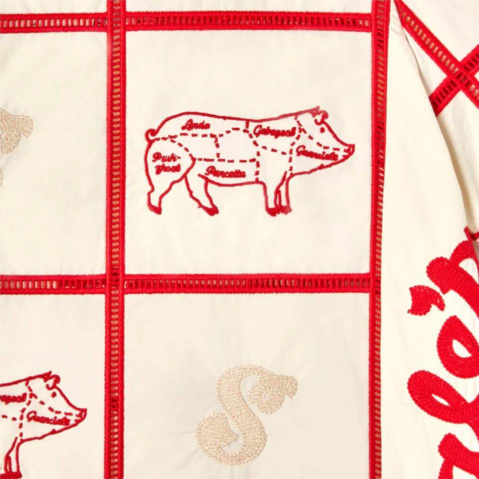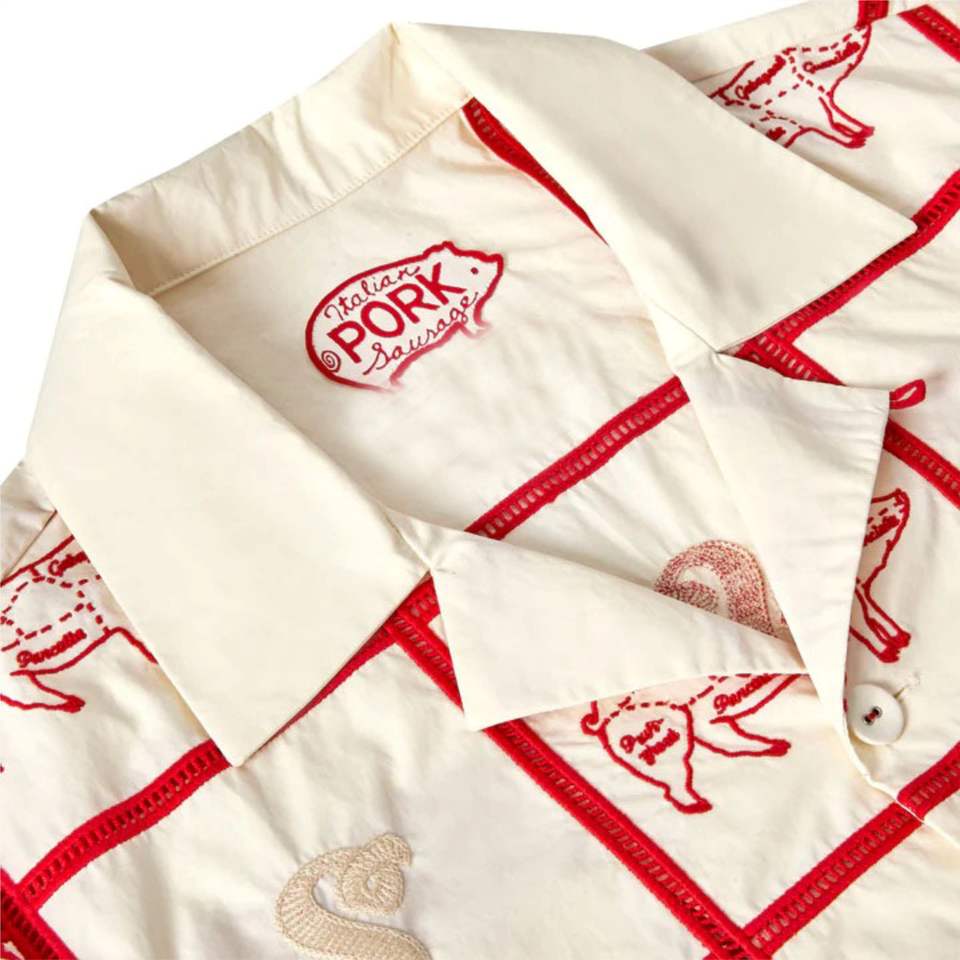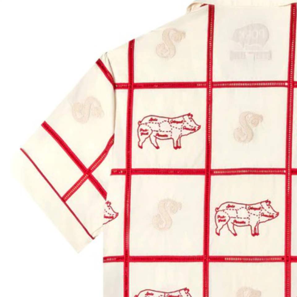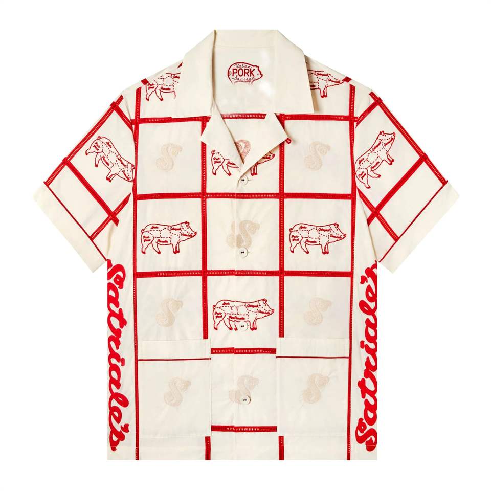 เสื้อผู้ชายลำลองสตรีทแวร์เสื้อของผู้ชายมีแผงลูกไม้ย้อมสีด้ายหมูและรายละเอียดที่ได้รับแรงบันดาลใจจากโซปราโนสำหรับนักสะสม