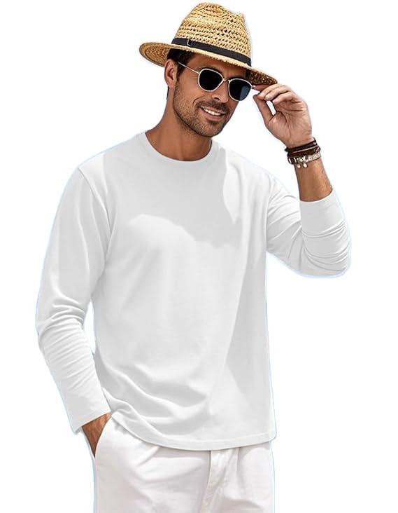 Men's Shirts Long Sleeve Cotton T-Shirt Crew Neck Mid weight Tees Classic Basic Casual Tops Plain Soft Shirt
