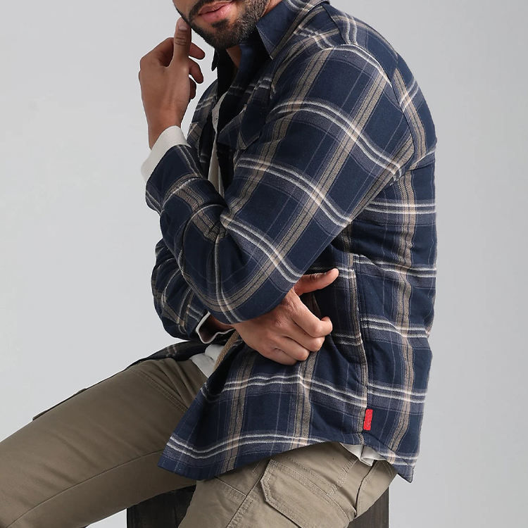 เสื้อเชิ้ตแขนยาวลายทางผ้าฟลานเนลสำหรับผู้ชาย ผ้าฝ้าย 100% ระบายอากาศได้ดี ไม่ยับ แห้งเร็ว จัดส่งรวดเร็ว