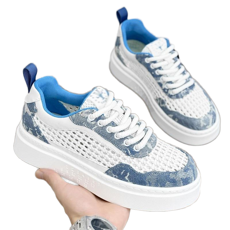 รองเท้าผู้ชาย 2025 รุ่นใหม่ ฤดูร้อน ระบายอากาศได้ดี ผ้าตาข่าย รองเท้าวิ่งแบบผูกเชือก เพิ่มความสูง พื้นหนา ทันสมัย กำลังฮิต