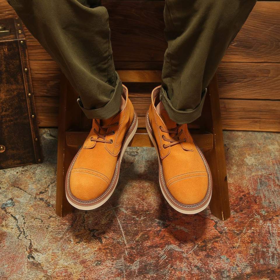 รองเท้าบูทผู้ชายหนังแท้คุณภาพสูงกันลื่นสไตล์วินเทจคาวบอยบุขนแกะอุ่นสบายแบบหุ้มข้อกลางลำลองสำหรับฤดูหนาวปี 2025