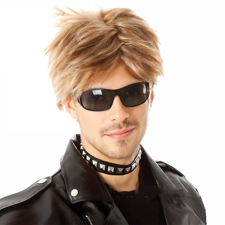 วิกผมสังเคราะห์สั้นฟูสำหรับผู้ชายทรงผมแฟชั่นสำหรับปาร์ตี้คอสเพลย์ดูเป็นธรรมชาติสำหรับใส่ทุกวัน