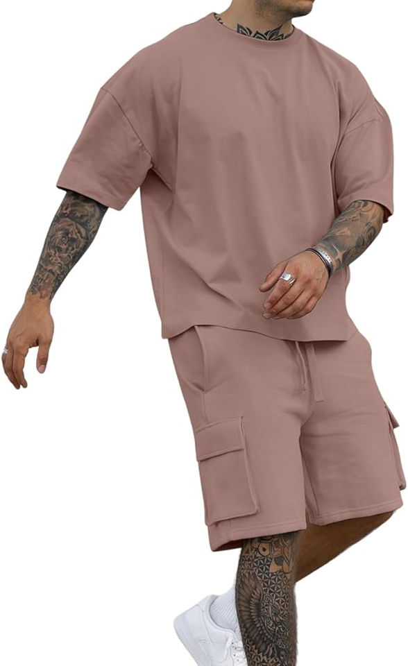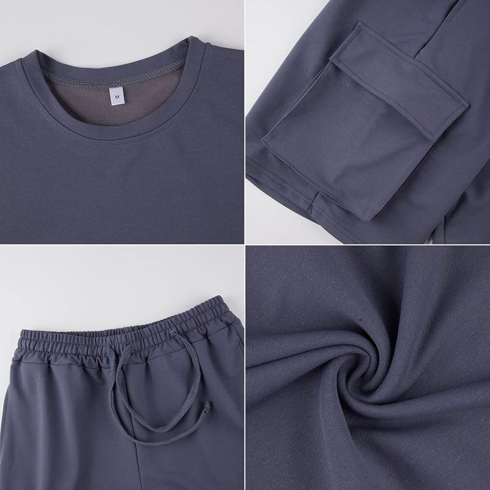 ชุดสเวตเตอร์คอกลมแขนสั้นสำหรับผู้ชาย, เซ็ต2ชิ้นเสื้อสเวตเตอร์คอกลมแขนสั้นลำลองสำหรับฤดูร้อน