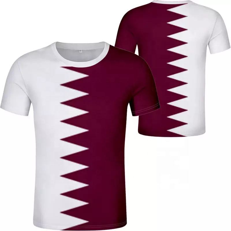 เสื้อยืดผ้าลูกฟูกแขนสั้นของผู้ชายจากกาตาร์เสื้อยืดพิมพ์ลายดิจิทัลพิมพ์ซับลิเมชันสำหรับผู้ใหญ่โลโก้ออกแบบได้ตามที่ต้องการ