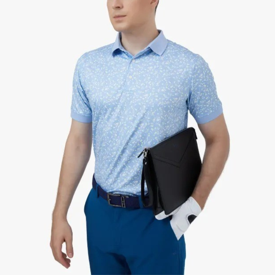 เสื้อยืดกอล์ฟแขนสั้นของผู้ชายเสื้อโปโลสำหรับ100% ผ้าคอตตอนผ้าสแปนเด็กซ์แห้งเร็วติดโลโก้ตามสั่ง
