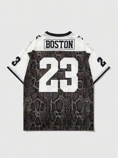 เสื้อเจอร์ซีย์แขนสั้นของผู้ชายเสื้อยืดลายงูพิมพ์สโลแกนชุดกีฬาฤดูใบไม้ผลิฤดูร้อนเสื้อฟุตบอลผ้าตาข่ายถัก