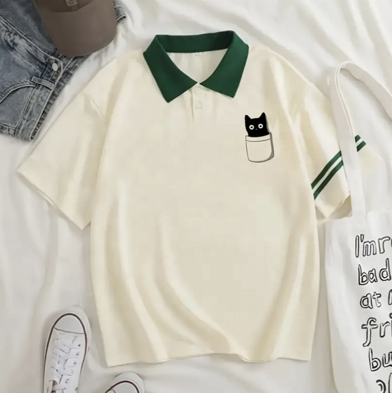 เสื้อโปโลแขนสั้นสำหรับผู้ชายเสื้อโปโลแขนสั้นลายทางแบบบ็อกซี่ฟิตแบบว่างเสื้อโปโลแขนสั้นลายทางออกแบบโลโก้ได้ตามต้องการ