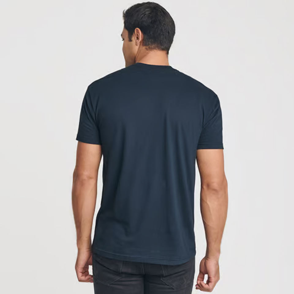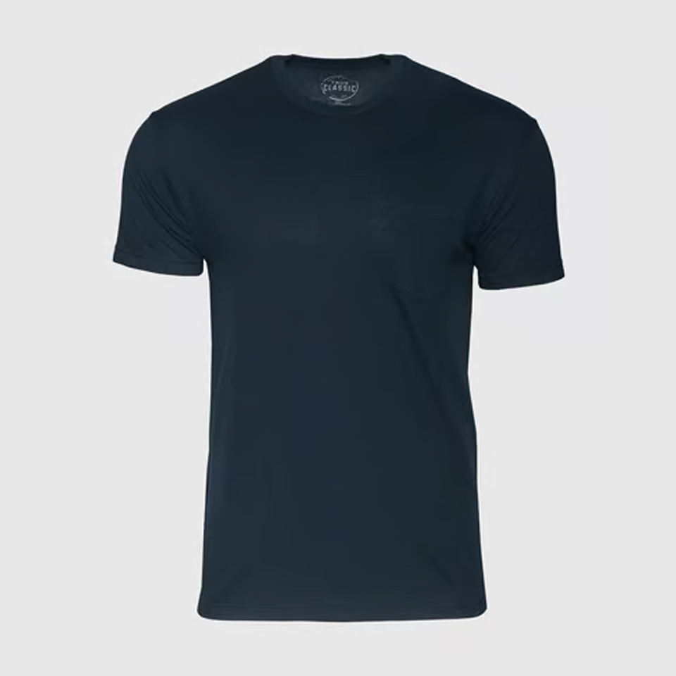 เสื้อยืดแขนสั้นของผู้ชายเสื้อยืดธรรมดาสีฟ้ามีกระเป๋า