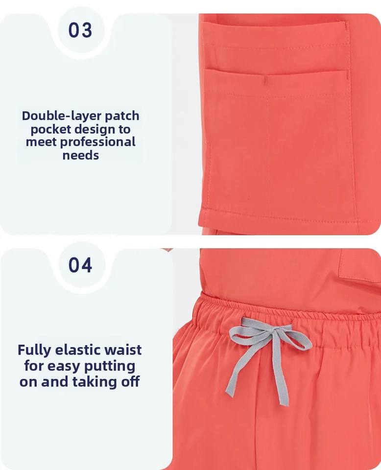 ชุดเสื้อผ้าทำงานแขนสั้นของผู้ชายชุดผ่าตัดทางการแพทย์แห้งเร็วยืดหยุ่นชุดเครื่องแบบขัดคอเสื้อแขนสั้น
