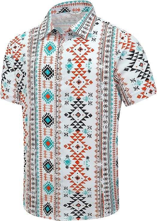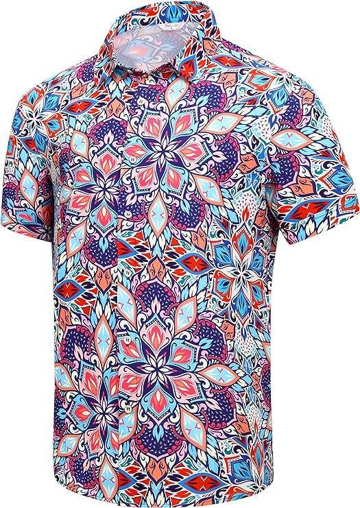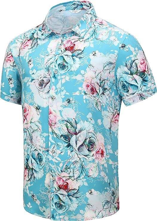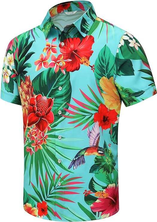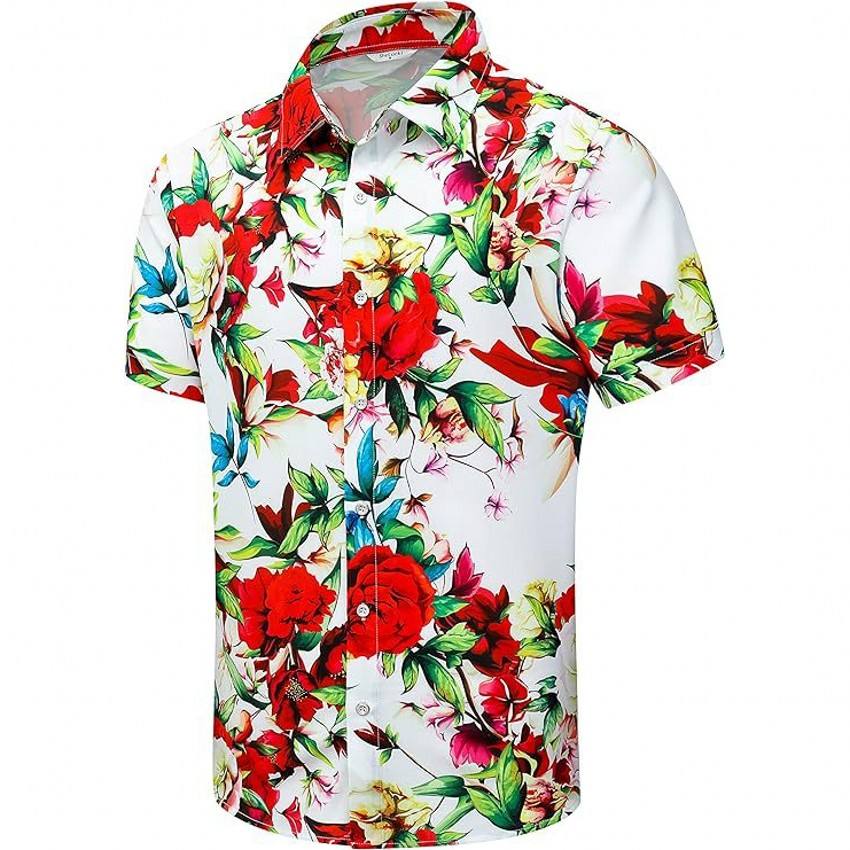 เสื้อเชิ้ตฮาวายแขนสั้นมีกระดุมพิมพ์ลาย Palmshadow เสื้อลำลองสำหรับชายหาดฤดูร้อน