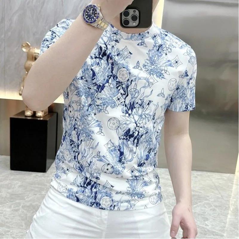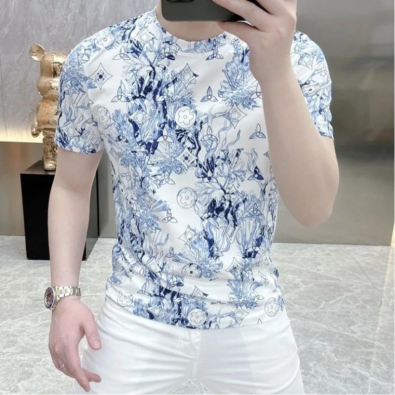 เสื้อยืดคอกลมแขนสั้นสำหรับผู้ชายผ้าคอตตอนคอกลมผ้าคอ100% ฟิตเนสชุดกีฬา