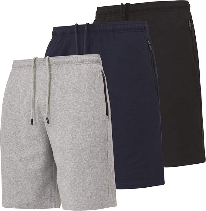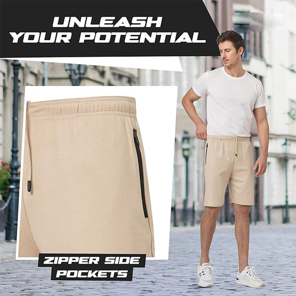 กางเกงขาสั้นผู้ชายลำลอง กางเกงกีฬาขาสั้นสำหรับออกกำลังกาย มีกระเป๋าซิป