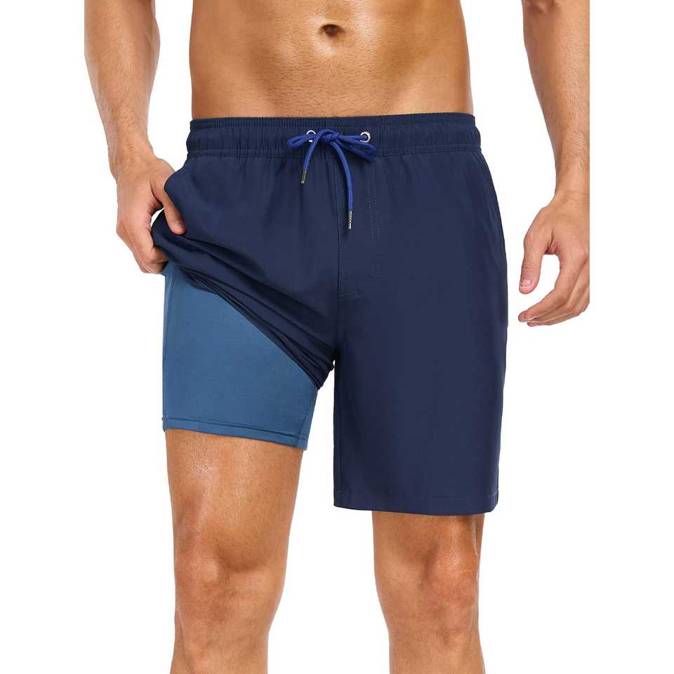 Hommes กางเกงขาสั้นผ้าไนลอนแบบ2 in 1สำหรับผู้ชายผ้าไนลอนสแปนเด็กซ์5นิ้วออกแบบได้เองสำหรับฤดูร้อน