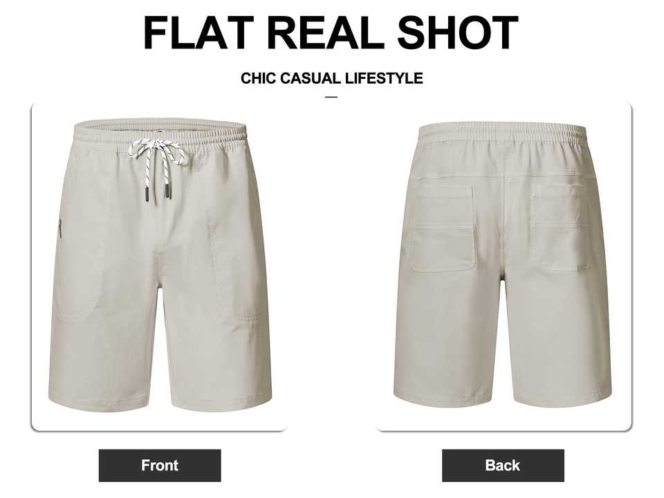 กางเกงขาสั้นผู้ชายยืดแบบแบนด้านหน้าแบนแบบลำลองเสื้อผ้าออกกำลังกายแบบผูกเชือกกางเกงขาสั้นเบอร์มิวดาสำหรับฤดูร้อนพร้อมกระเป๋าซิป