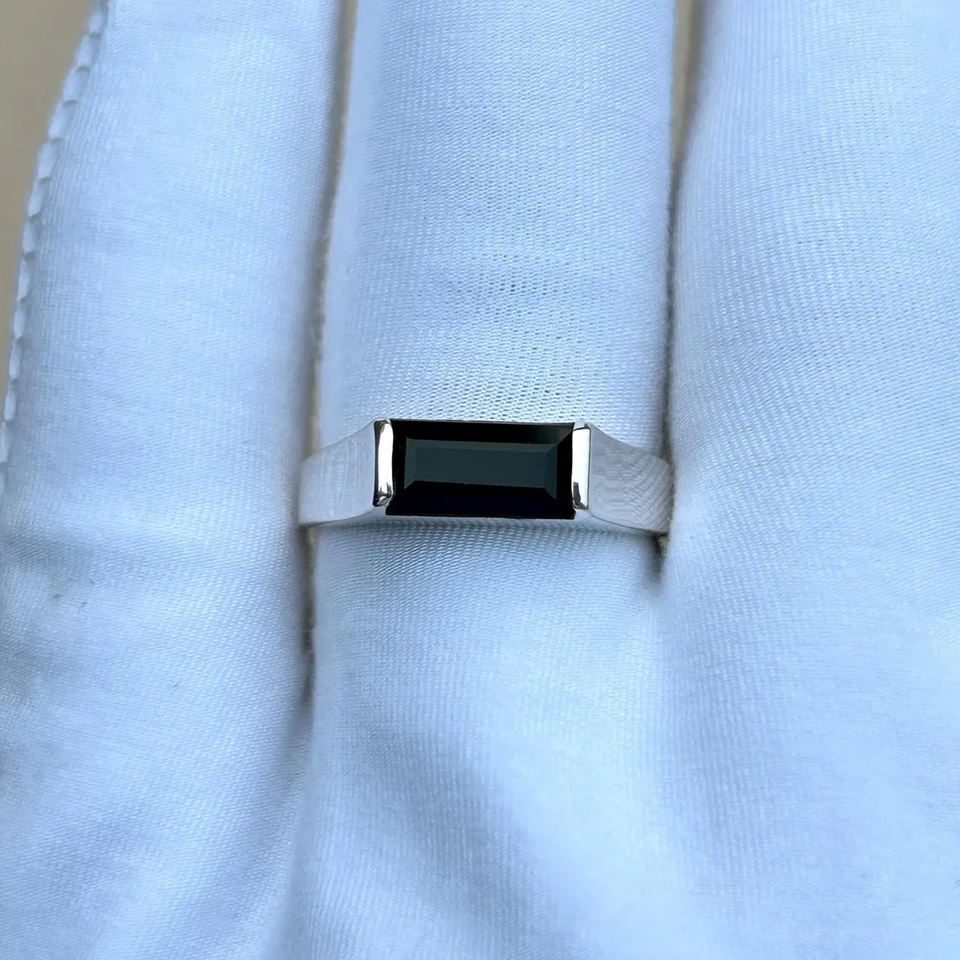 แหวนที่เป็นตราของผู้ชายแหวนโอนิกซ์สีดำธรรมชาติ925เงินสเตอร์ลิงสี่เหลี่ยมผืนผ้าเครื่องประดับโรงงานขายส่งผู้ผลิตตามต้องการ