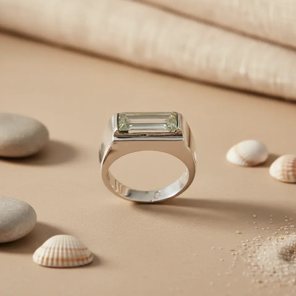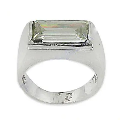 แหวนเงินทรง Emerald Cut สำหรับผู้ชาย ดีไซน์โดดเด่น สไตล์โบฮีเมียน พร้อมใบรับรอง IGI ชุบโรเดียม และฝังพลอย