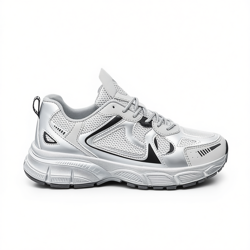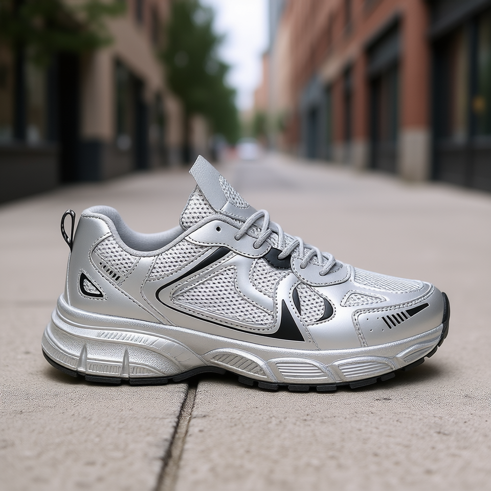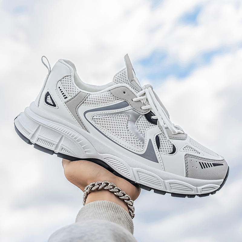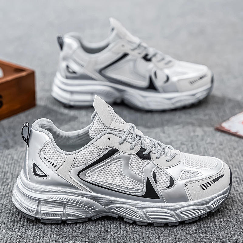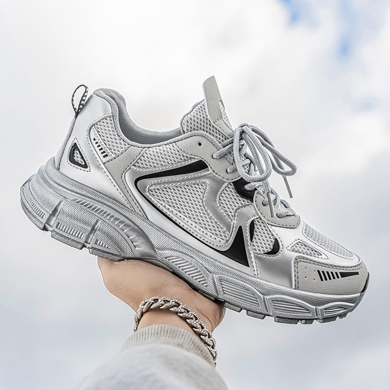 รองเท้าผ้าใบผู้ชายสีเงินแบบตาข่าย ระบายอากาศได้ดี มีเชือกผูก หัวมน สวมใส่สบาย เหมาะกับทุกฤดูกาล แฟชั่นทันสมัย