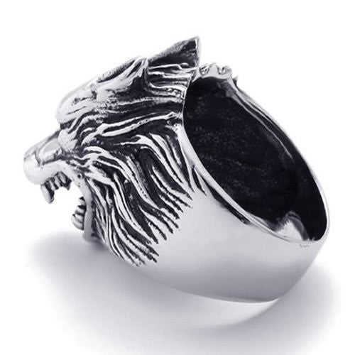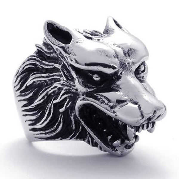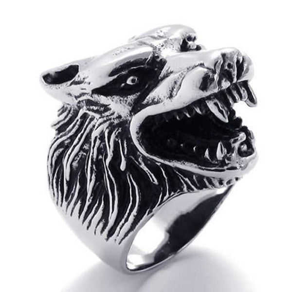 แหวนสแตนเลสสีเงินรูปหัวหมาป่าสำหรับผู้ชาย ผู้ขายชาวอเมริกัน แหวนคุณภาพดี ไซส์ 7-15 รุ่น SR57