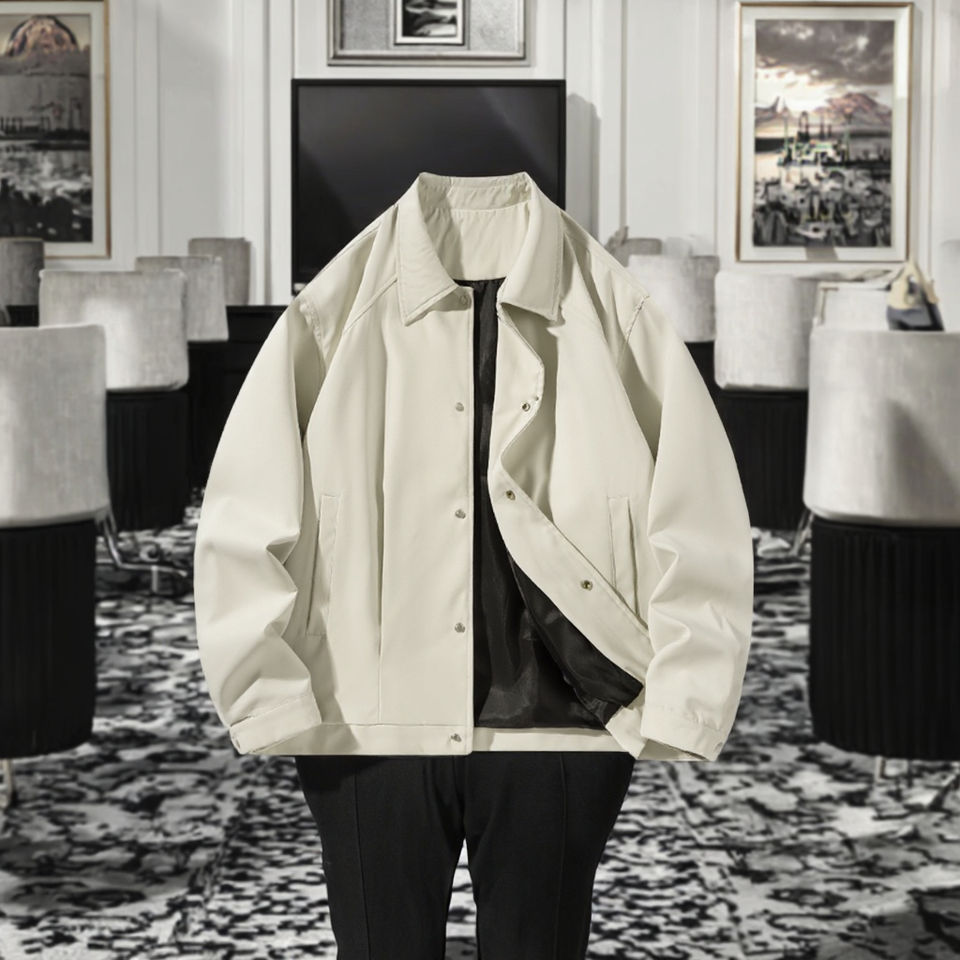 เสื้อแจ็คเก็ตวาร์ซิตี้แฟชั่นเรียบง่ายสำหรับผู้ชาย คอปก ระบายอากาศ กันลม เสื้อนอกเคลือบผ้าไม่ทอ สวมใส่ได้ทั้งในออฟฟิศและลำลอง สำหรับฤดูใบไม้ผลิ