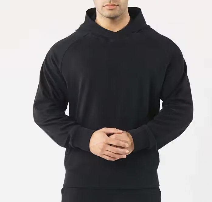 เสื้อฮู้ดลายขนแปรงเส้นเดียวของผู้ชายเสื้อฮู้ดโลโก้ผ้าคอตตอน5% อีลาสเทนสำหรับฝึกในยิมมีช่องกันลื่น