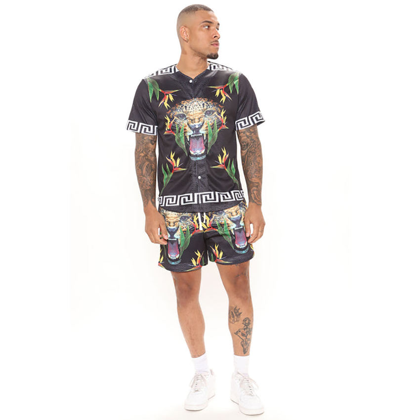 ชุดเสื้อผ้าแนวสตรีทพิมพ์ลายเสือดำสำหรับผู้ชาย, ชุดเสื้อผ้าสองชิ้นเสื้อพิมพ์ลายเสือดำระบายอากาศได้ดีสำหรับฤดูร้อน