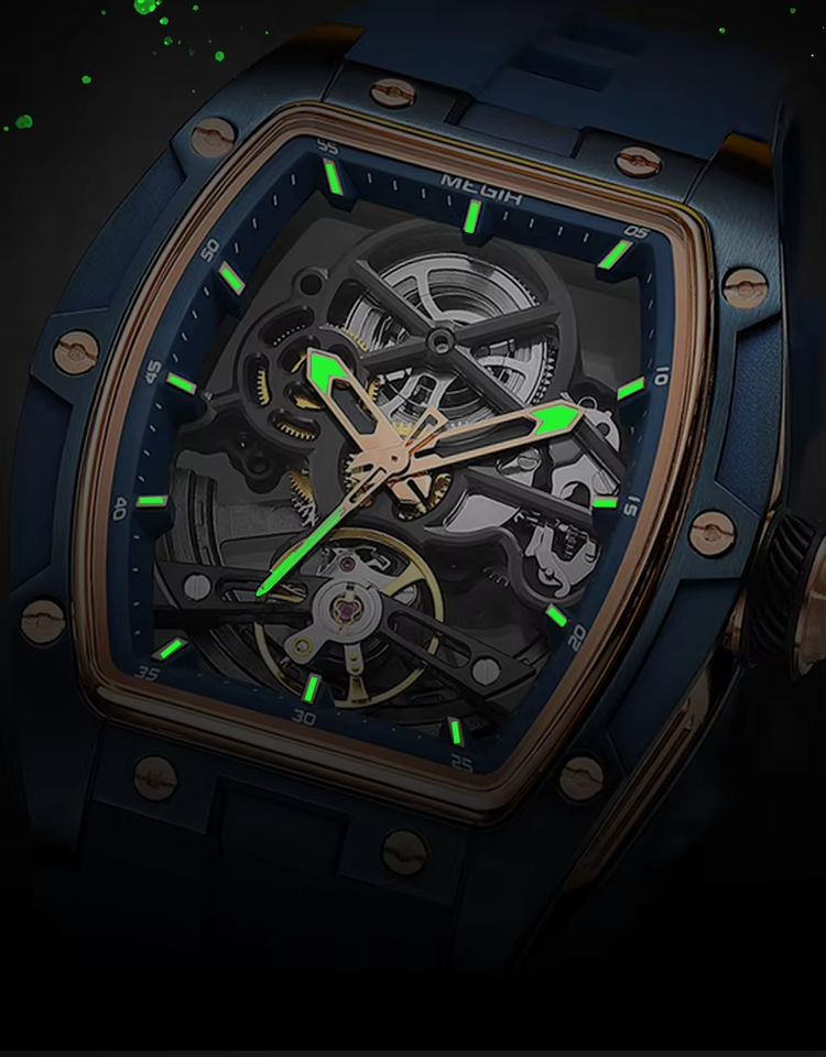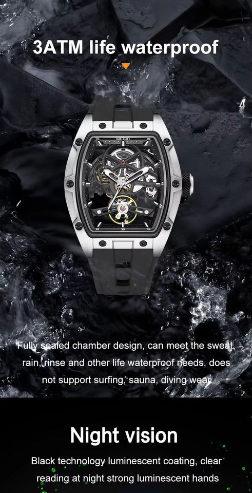 นาฬิกาข้อมือผู้ชาย โครงกระดูกโปร่งใส ระบบออโตเมติก หรูหรา ทรงกระบอกสีขาว สายซิลิโคน