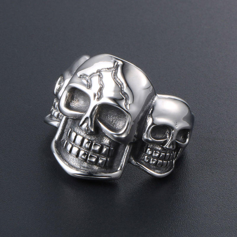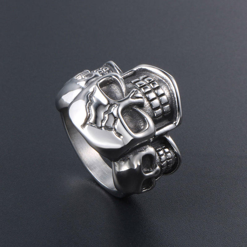 แหวนเหล็กไทเทเนียมรูปหัวกะโหลกสำหรับผู้ชาย เครื่องประดับสไตล์เรโทรพังก์ SA564