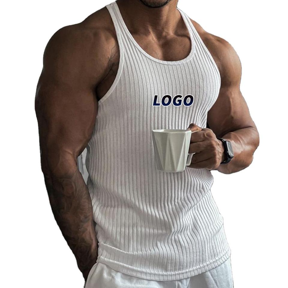 เสื้อกล้ามสำหรับไปยิมฟิตเนสแขนกุดคอตตอนแขนกุดสำหรับผู้ชายเสื้อกล้ามสร้างกล้ามเนื้อพื้นเรียบออกแบบโลโก้ได้ตามต้องการ