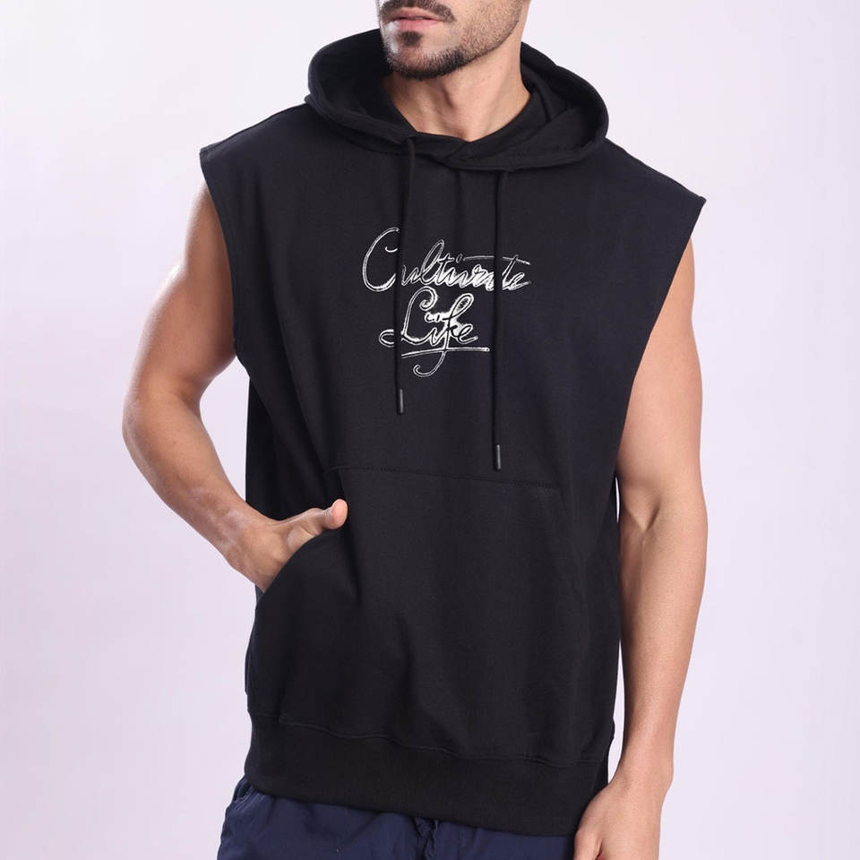 เสื้อฮู้ดแขนกุดผู้ชาย