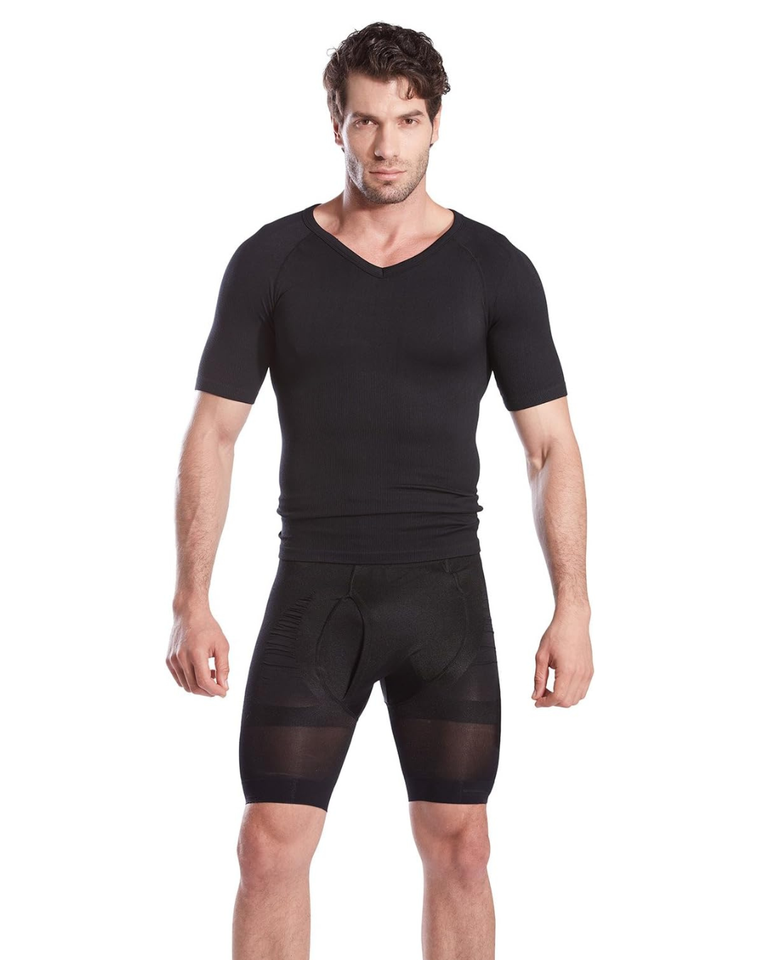 เสื้อรัดรูปคอวีแขนกุดของผู้ชายเข้ารูปและเข้ารูปสุดๆสำหรับกระชับสัดส่วน & รัดรูป