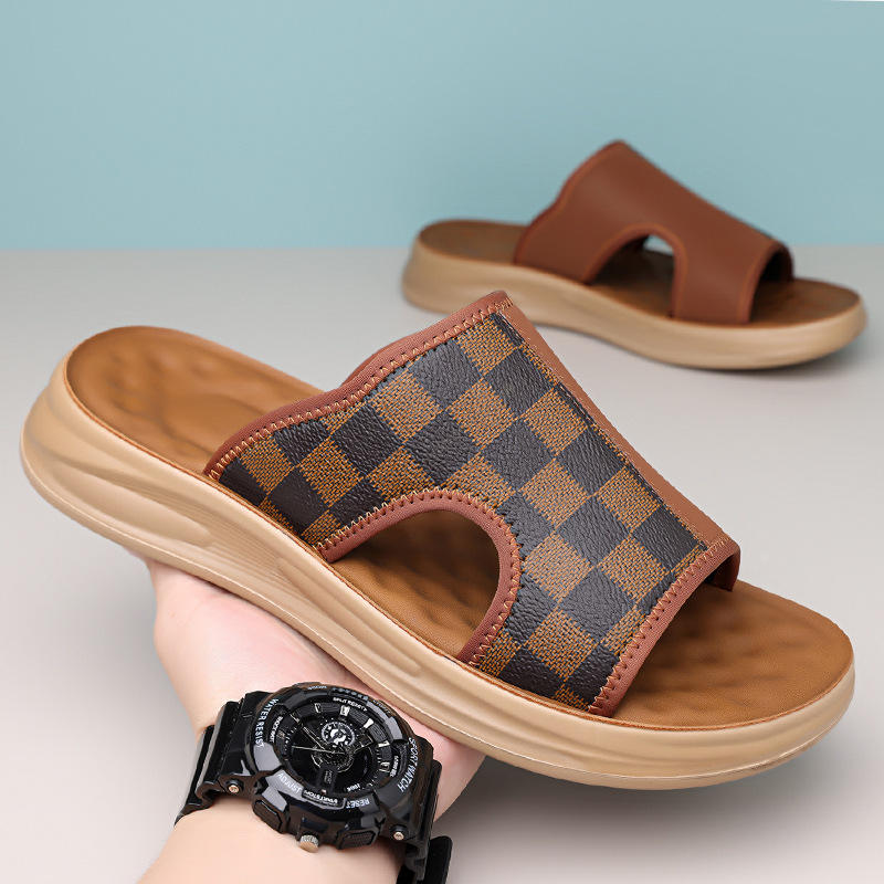 รองเท้าแตะผู้ชายสีเทาสีน้ำตาลระบายอากาศได้ดีรองเท้าชายหาดกลางแจ้งแบบลำลองเยาวชนอายุ 18 40 ปีสไตล์สวมแบบสลิปออน 9801
