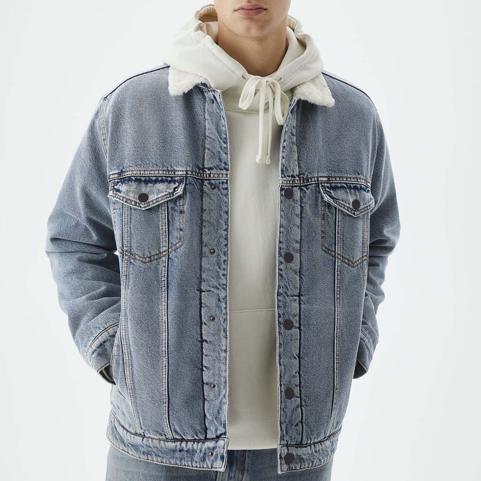 แจ็กเก็ตยีนส์คอปกพับลงของผู้ชาย, แจ็กเก็ตยีนส์แฟชั่นเข้ารูปใหม่ขนาดพิเศษสำหรับผู้ชาย
