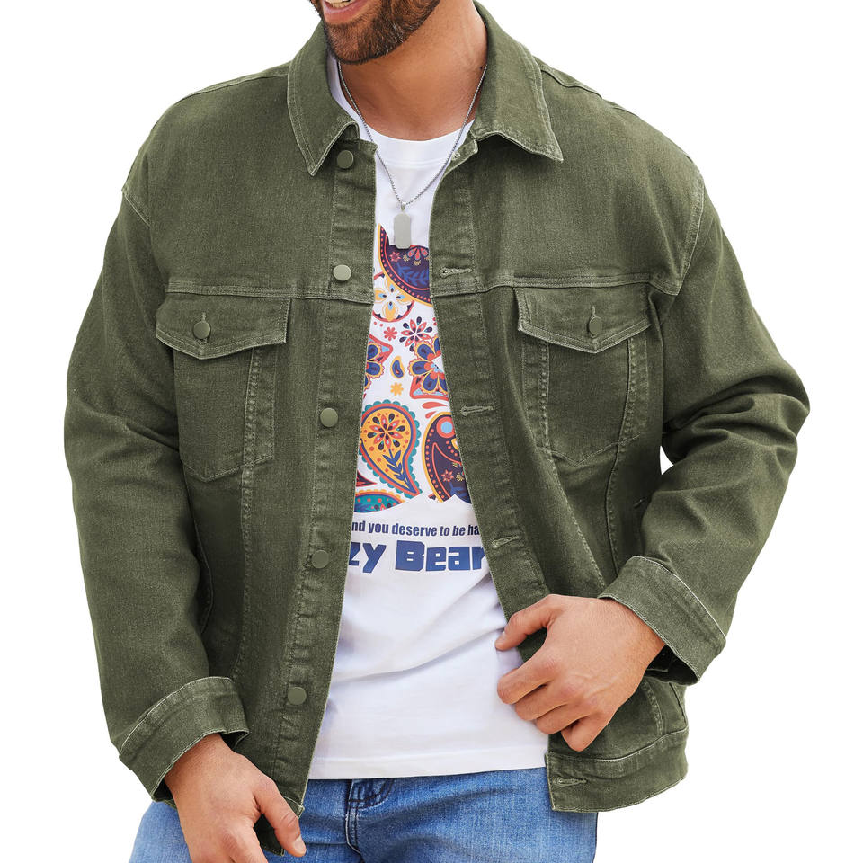 แจ็คเก็ตยีนส์ผู้ชายทรงเข้ารูปสำหรับฤดูหนาว คอตั้ง พร้อมโลโก้ด้านหน้า ซับในผ้าฝ้าย 100% ขายส่ง