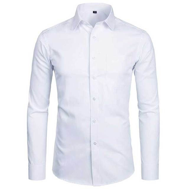 เสื้อเชิ้ตทำงานสีขาวเรียบง่ายสำหรับผู้ชาย