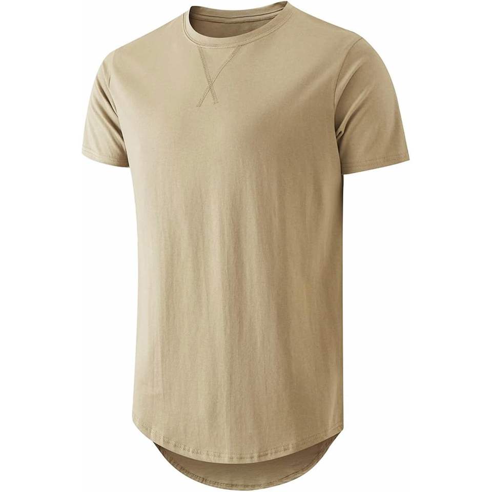 เสื้อยืดผ้าฝ้ายฮิปสเตอร์ฮิปฮอปทรงสลิมฟิตสำหรับผู้ชายเสื้อคอกลมน้ำหนักเบามีสายยาวแขนสั้นดีไซน์ทันสมัย