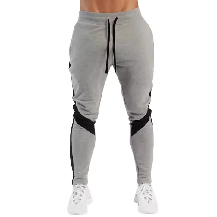 กางเกงวิ่งขายาวเข้ารูปสำหรับผู้ชายกางเกงวิ่งแบบลำลองมีกระเป๋าด้านข้างและด้านหน้าติดโลโก้ที่กำหนดเอง