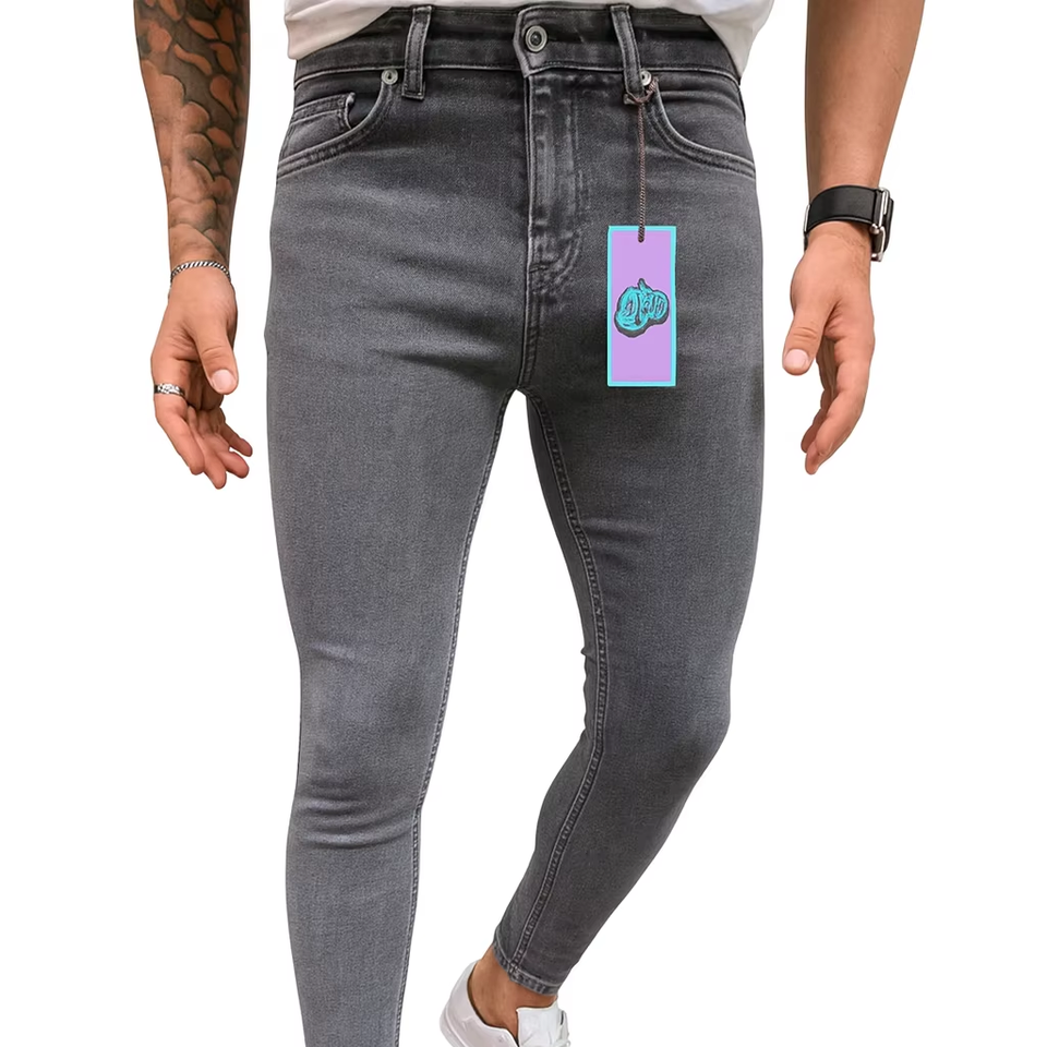 Men's Slim Fit Straight Jeans Casual Stretch Mid Waist Colored Denim Softener Eco-Friendly Vintage Streetwear White Customized