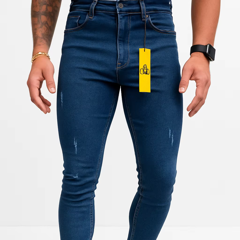 กางเกงยีนส์ทรงสลิมฟิตผู้ชาย ทรงตรง สไตล์ลำลอง ยืดได้ เอวกลาง สีเดนิม ผ่านการปรับสภาพผ้า เป็นมิตรกับสิ่งแวดล้อม สไตล์วินเทจ สตรีทแวร์ ลวดลายปะติด