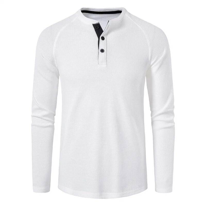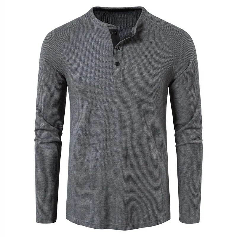 เสื้อยืดเฮนลีย์แขนยาวคอวีทรงโอเวอร์ไซส์สำหรับผู้ชาย ผ้าคอตตอนวาฟเฟิลเนื้อหนา สไตล์ลำลอง สตรีทแวร์ สีพื้น สำหรับฤดูใบไม้ร่วง รุ่นพลัสไซส์