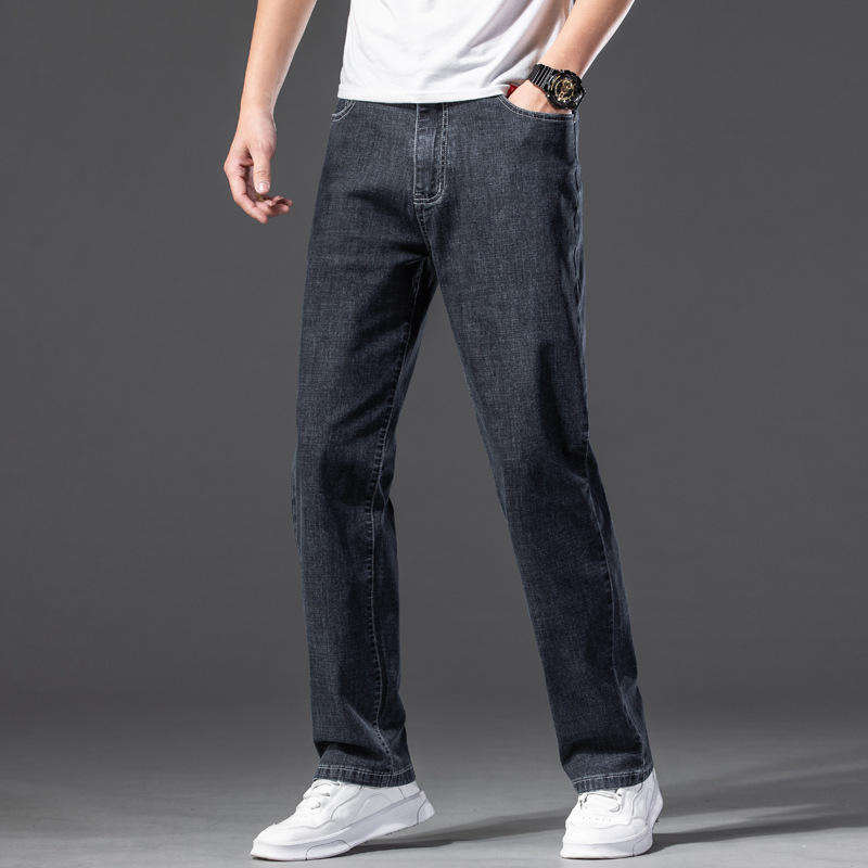 กางเกงยีนส์ผ้ายืดสำหรับผู้ชาย, กางเกงยีนส์ซักทรงสลิมฟิตสไตล์ลำลองคลาสสิกพร้อมหน้าแบนสวมใส่สบายและมีขนาดพิเศษ