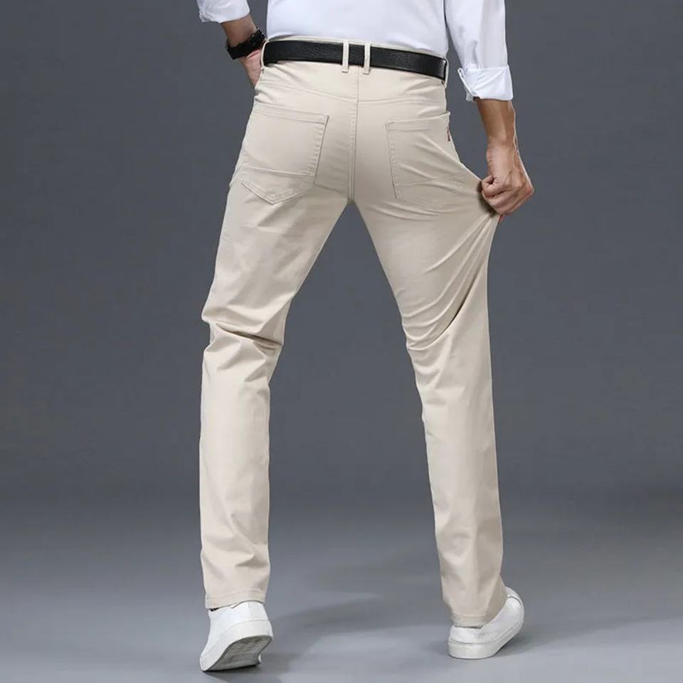 กางเกงลำลองผู้ชายทรงสลิม ผ้าฝ้าย น้ำหนักเบา ทรงตรง เอวกลาง ด้านหน้าเรียบ สีอ่อน บริการ OEM มีให้บริการ