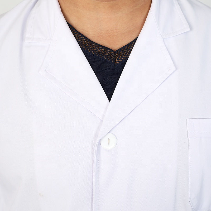 เสื้อโค้ทแลปเข้ารูปของผู้ชายเสื้อโค้ทสีขาวสำหรับห้องแล็บ3กระเป๋าเสื้อกาวน์หมอดีไซน์สุดฮ็อต